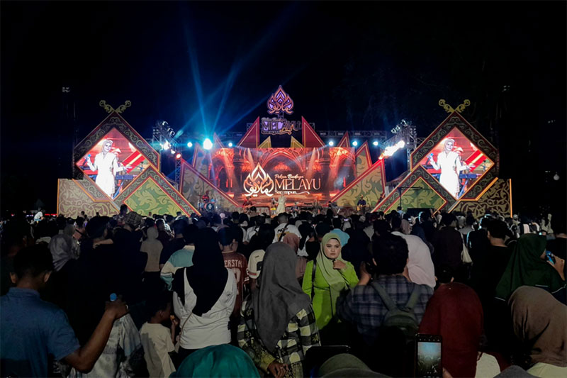 Panggung utama menampilkan Omok Siak, kolaborasi syair dan sastra lisan, musik Gambang Kromong, tari daerah, serta peragaan wastra Riau. Pelukis pasir Vina Candrawati menghidupkan suasana dengan karyanya, sedangkan penyanyi Lady Rara mengajak penonton bernyanyi dan bergoyang bersama.