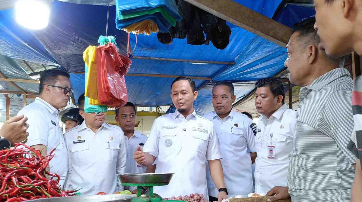 Pekanbaru (Riaunews.com) –  Wali Kota Pekanbaru Agung Nugroho meninjau langsung kondisi harga dan stok pangan di Pasar Palapa, Jalan Durian, Rabu (10/9/2025). Dalam kunjungan itu, Agung didampingi sejumlah kepala Organisasi Perangkat Daerah (OPD) dan berdialog dengan para pedagang.