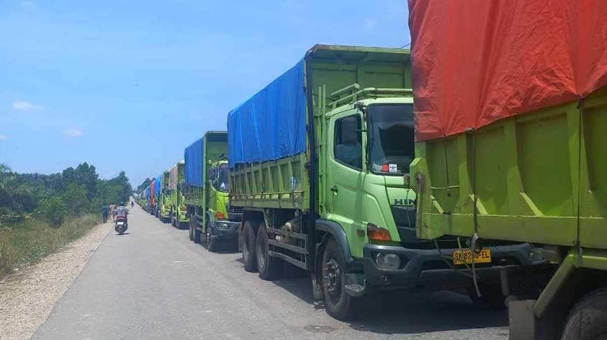 Pekanbaru (Riaunews.com) – Setiap hari, antrean sekitar 120 truk bermuatan batu bara seberat 35–37 ton terlihat berjejer sepanjang 1,5 kilometer menuju PLTU Tenayan, Pekanbaru. Aktivitas ini tidak hanya melanggar aturan karena PLTU dilarang menerima pasokan batu bara lewat jalur darat, tetapi juga menimbulkan kerusakan parah pada jalan yang dilalui.