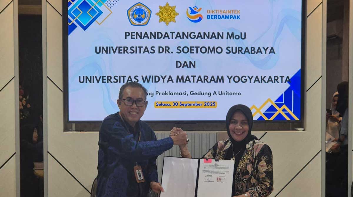 Yogyakarta (Riaunews.com) – Universitas Widya Mataram (UWM) melaksanakan kunjungan ke Universitas Dr. Soetomo (Unitomo) Surabaya pada Selasa (30/9). Rektor UWM Prof. Dr. Edy Suandi Hamid, M.Ec. memimpin langsung rombongan yang terdiri dari para wakil rektor, dekan, dan wakil dekan. Mereka disambut hangat oleh Rektor Unitomo Prof. Dr. Siti Marwiyah, S.H., M.H. beserta jajaran pimpinan universitas.