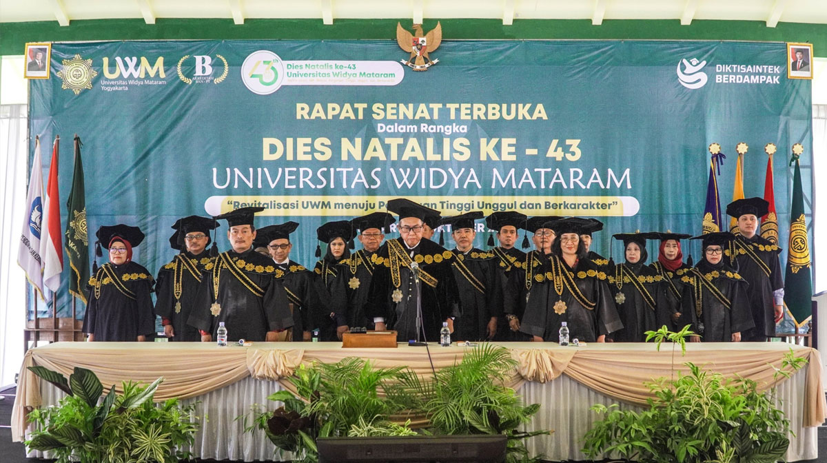 Yogyakarta (Riaunews.com) – Universitas Widya Mataram (UWM) menggelar upacara Dies Natalis ke-43 dengan penuh khidmat di Pendopo Agung Kampus Terpadu, Banyuraden, Sleman, Selasa (7/10/2025). Acara ini dihadiri dosen, tenaga kependidikan, mahasiswa, serta mitra institusi dan menjadi momentum refleksi perjalanan kampus serta apresiasi terhadap sivitas akademika yang berdedikasi.