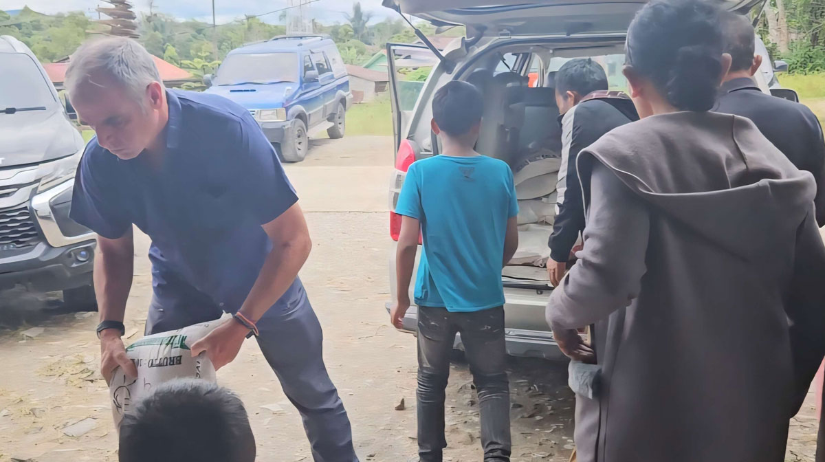 Humbang Hasundutan (Riaunews.com) – Warga Negara Prancis, Bertrand, bersama keluarganya menyalurkan bantuan kemanusiaan kepada para korban banjir bandang dan longsor di Posko Pengungsian Batunagodang Siatas, Kabupaten Humbang Hasundutan, Senin (15/12/2025). Bantuan tersebut diberikan kepada 298 pengungsi yang terdampak bencana.
