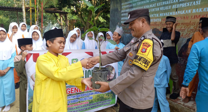 Kapolres Siak AKBP Sepuh Ade Irsyam Siregar, S.H., S.I.K., M.H. melalui Kapolsek Kandis Kompol H. Herman Pelani, S.H., M.H. dalam kesempatan tersebut menyampaikan, “Kami berharap kegiatan ini dapat menjadi langkah awal bagi generasi muda dalam membentuk pola pikir yang peduli terhadap lingkungan. Melalui kemitraan dengan pihak sekolah, kami ingin menumbuhkan kesadaran bersama tentang pentingnya menjaga bumi, bukan hanya di dalam sekolah, tetapi juga di lingkungan sekitar.”