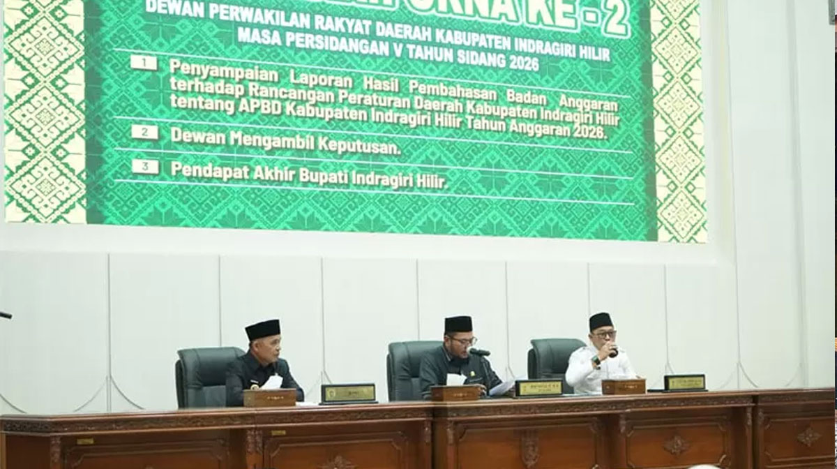 Rapat Paripurna ke-2 Masa Persidangan V Tahun Sidang 2026 tersebut dipimpin Ketua DPRD Inhil Iwan Taruna, didampingi Wakil Ketua Ahmad Junaidi, serta dihadiri langsung Bupati Inhil Herman. Dari total 45 anggota DPRD, sebanyak 36 orang hadir, bersama unsur Forkopimda dan jajaran Pemkab Inhil.