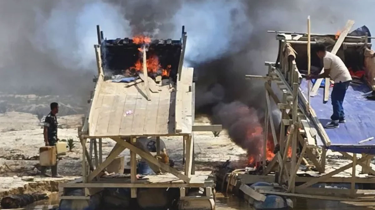 Terhadap temuan itu, petugas langsung memusnahkan seluruh rakit dan peralatan PETI dengan cara dirusak dan dibakar agar tidak dapat digunakan kembali. Dalam penertiban ini, petugas tidak menemukan pelaku di lokasi sehingga tidak ada tersangka maupun barang bukti yang diamankan.