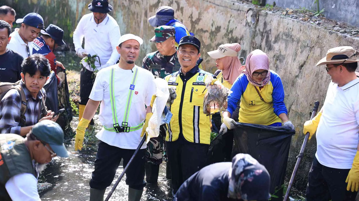 Sejumlah pejabat turut hadir, di antaranya Sekretaris Daerah Provinsi Riau Syahrial Abdi serta unsur Forkopimda. Agung terlihat langsung turun ke parit bersama jajarannya untuk mengangkat tumpukan sampah yang menghambat aliran air.