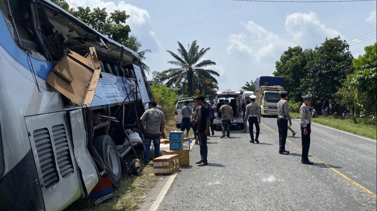 Kasat Lantas Polres Pelalawan, AKP Tatit Rizkiyan Hanafi, mengatakan kecelakaan tersebut tergolong berat dengan dampak fatal. “Empat penumpang bus meninggal dunia di TKP akibat benturan keras yang merusak sebagian bodi kendaraan,” ujarnya di lokasi kejadian.