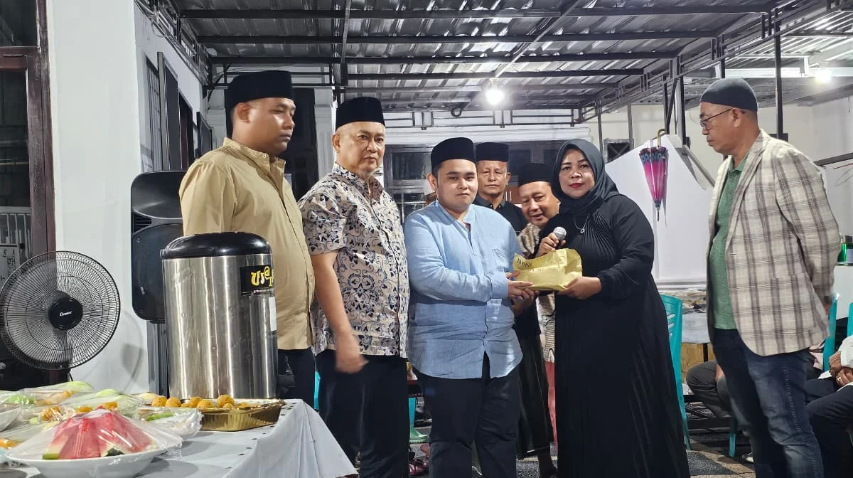 Penyerahan bantuan berlangsung di rumah duka di Pekanbaru dan diterima langsung oleh putra almarhum, Abbiyu, pada malam ketiga, Senin (20/4/2026).