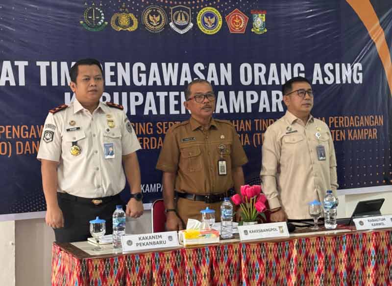 Kampar (RiauNews.com) – Kantor Imigrasi Kelas I TPI Pekanbaru menggelar Rapat Koordinasi Tim Pengawasan Orang Asing (TIMPORA) tingkat Kabupaten Kampar Tahun 2026 sebagai upaya memperkuat pengawasan terhadap keberadaan dan aktivitas orang asing, Selasa (21/04/2026).