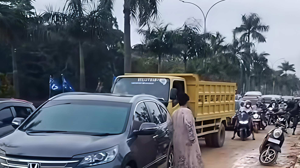 Tanah basah terlihat menempel di aspal sepanjang kurang lebih 30 meter dari area penimbunan lahan. Kondisi ini memicu kecelakaan ringan, terutama bagi pengendara sepeda motor.
