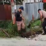 Curah Hujan Tinggi, Kapolsek Binawidya Gotongroyong Bersama Masyarakat Bersihkan Lingkungan