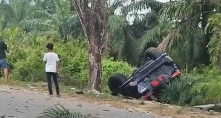 Mobil Dinas Wakil Ketua DPRD Bengkalis Terbalik Usai Ditabrak Innova